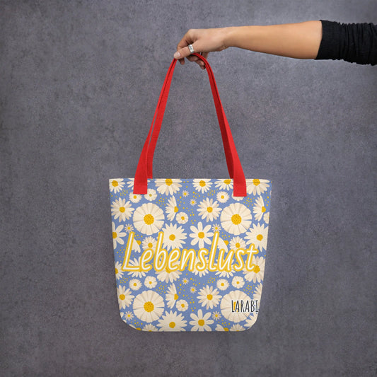 Stilvolle Tote Bag mit “I love Coffee” Kaffeefleck-Design – Stofftragetasche mit eleganten Mustern – Erhältlich in Schwarz, Rot und Gelb